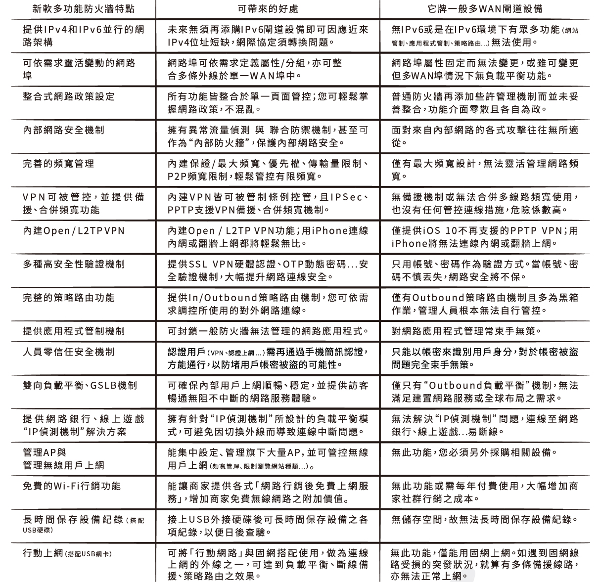 所以您除了可利⽤此產品來備援對外線路、負載平衡上網流量和防護內部網路外,選擇MHG-910,將為您降低設備成本,簡化複雜的架設環境,更可以利⽤其它功能管理有線/ 無線網路、頻寬及⽤⼾。